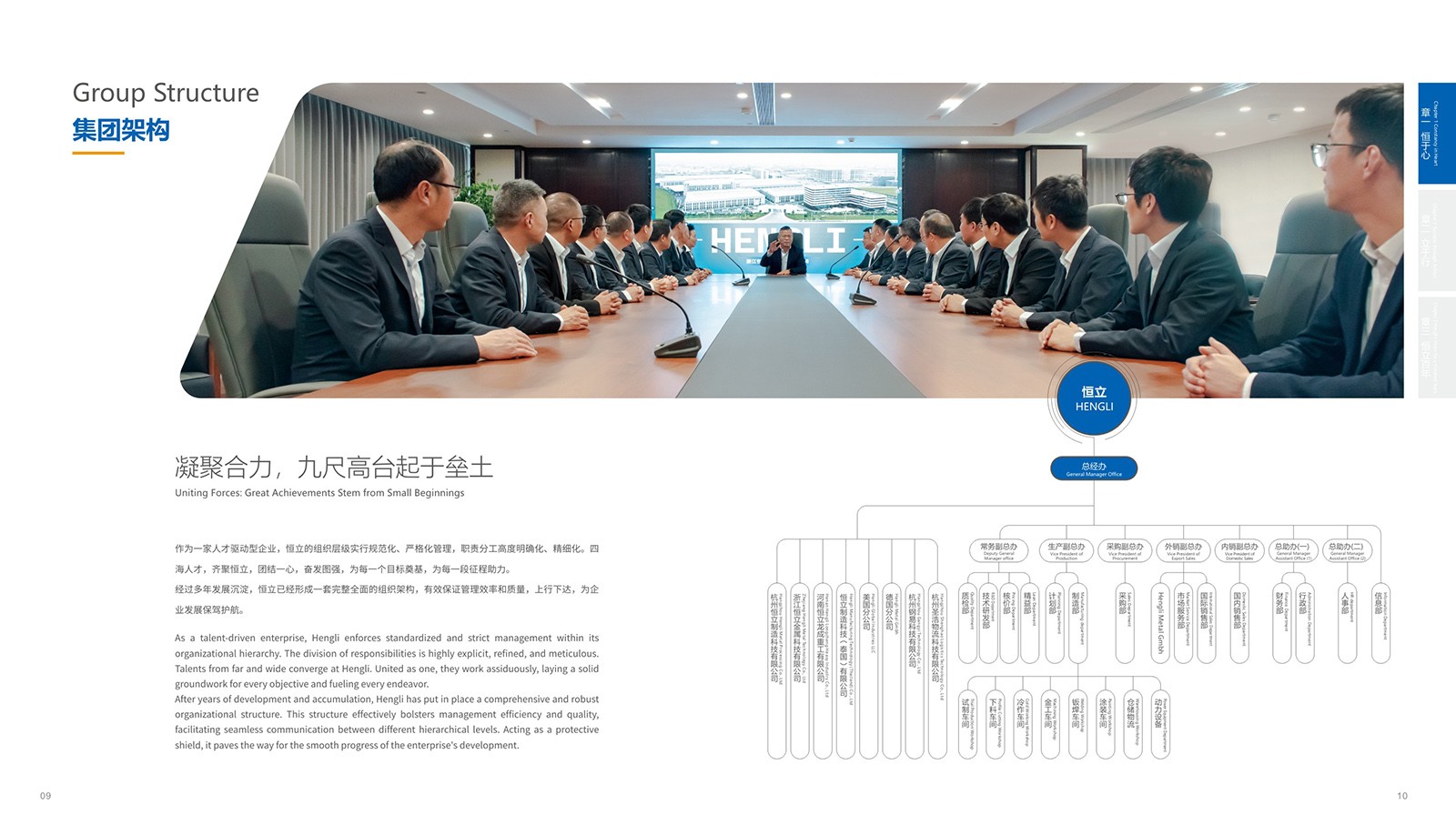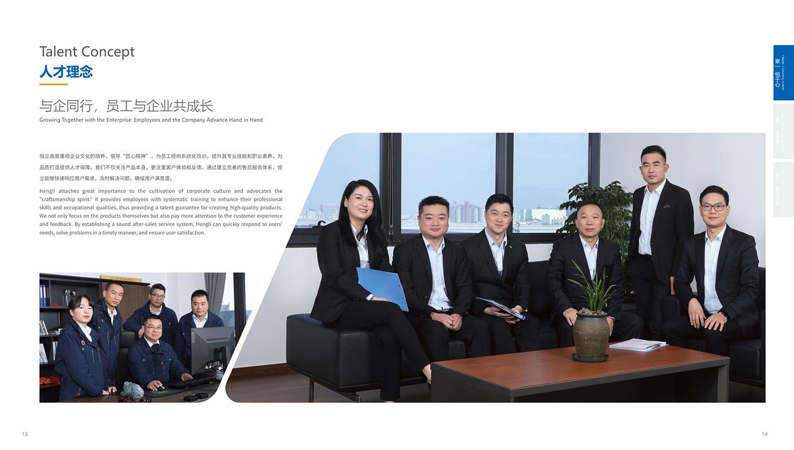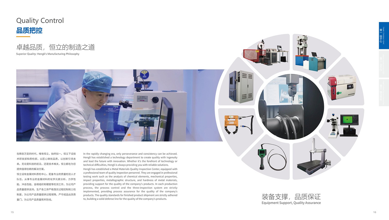 依據(jù)恒立的品牌色“恒立藍”為主色,加入印金和銀來體現(xiàn)金屬制造行業(yè)特色,采用科技感十足的設計,以科技藍與未來銀為主色調,搭配簡潔大氣的排版風格,使畫冊契合行業(yè)特點。